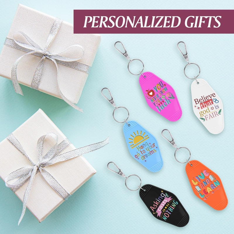 - DOUBLE SIDED DESIGN The funny motel keychain is made of high quality ABS plastic and is smooth on both sides. You can stick our matching UV stickers on the blank side of the keychain or you can DIY your own keychain patterns like memorable photos, numbers and text.
