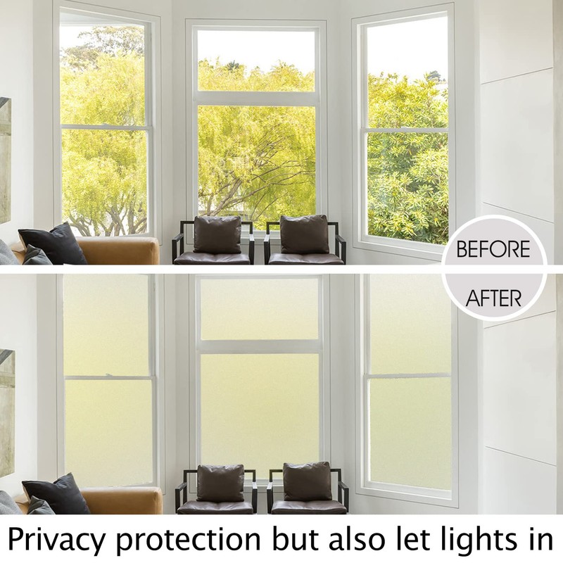 - NO GLUE & STATIC CLING: Super static cling to the window with a no-glue design, can protect your privacy well in an environmental way. Removable with no traces or residue left and can be applied several times, good to use at rented house or apartment.