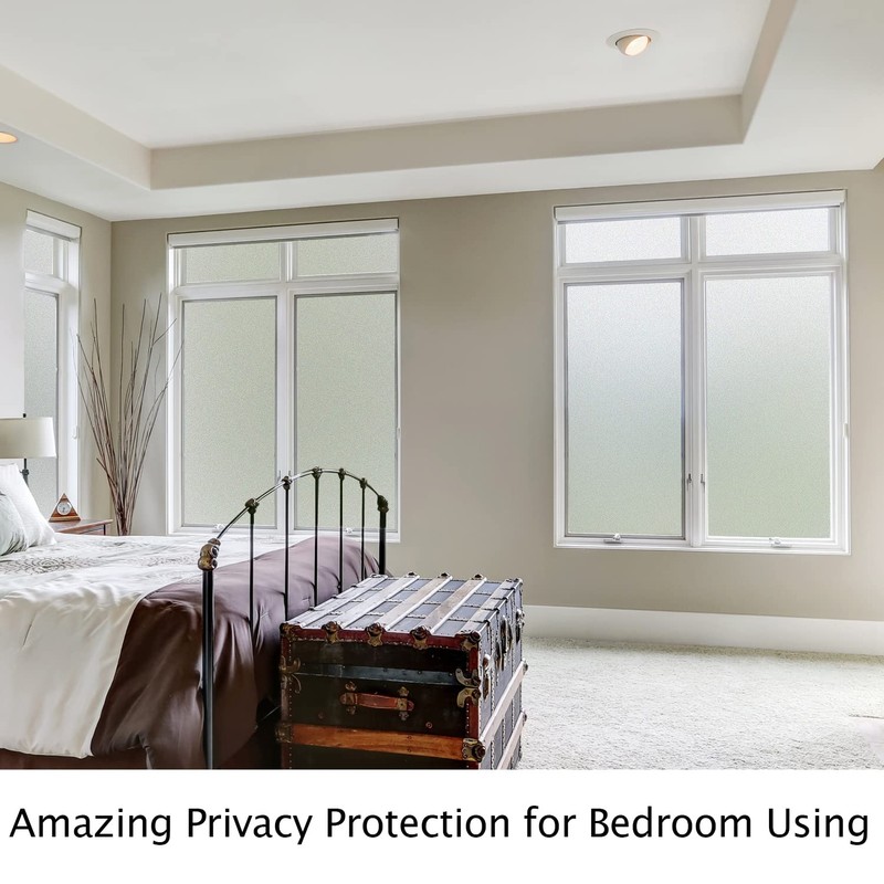 - ECONOMICAL FOR MULTI-SCENARIOS: No need to use heavy and expensive curtains or blinds, the glass frosting film is suitable for any FLAT, CLEAN, and SMOOTH glass door, window surfaces in the Bathroom, Balcony, Living Room, Bedroom, kitchen, balconie, cabinet, office, hotel etc. Note: Double-paned glass, cut glass and all processed glass is not workable for this frosted window film.
