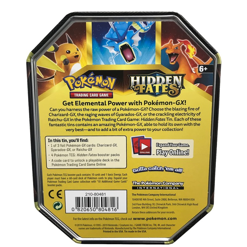 - 4 authentic booster packs from the Hidden Fates series, sealed by The Pokemon Company International.