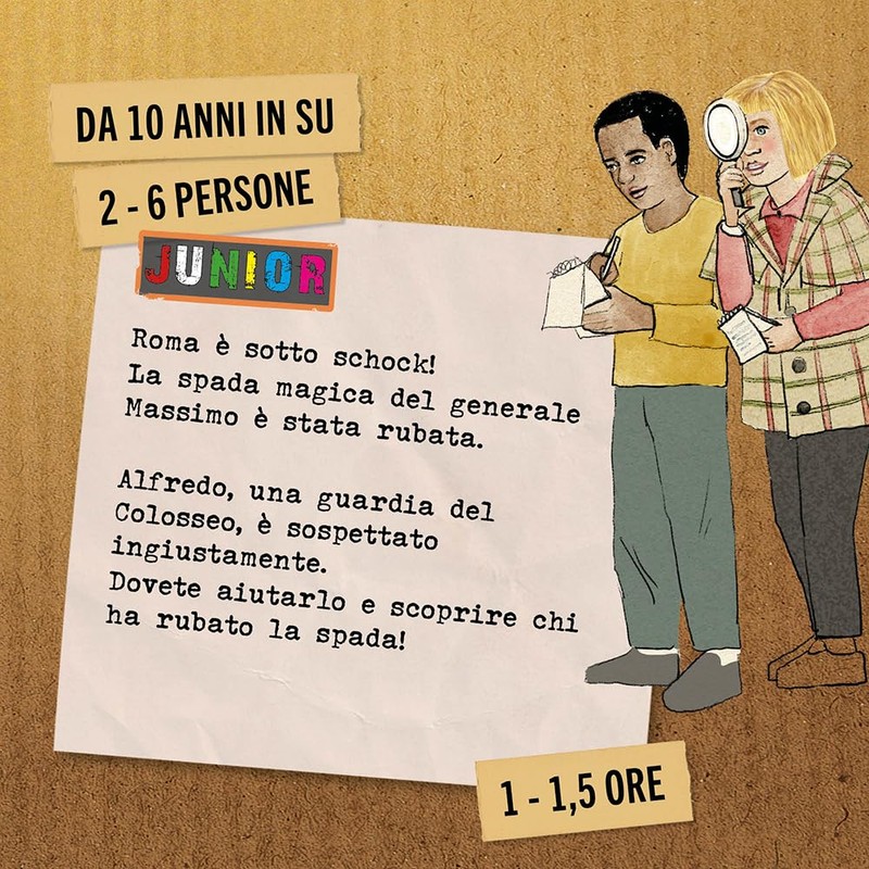 Rome is under shock! General Massimo Magic Sword has been stolen. Alfredo, a security guard of the Colosseum, is unjustly suspected. You have to help him and find out who stole the sword!