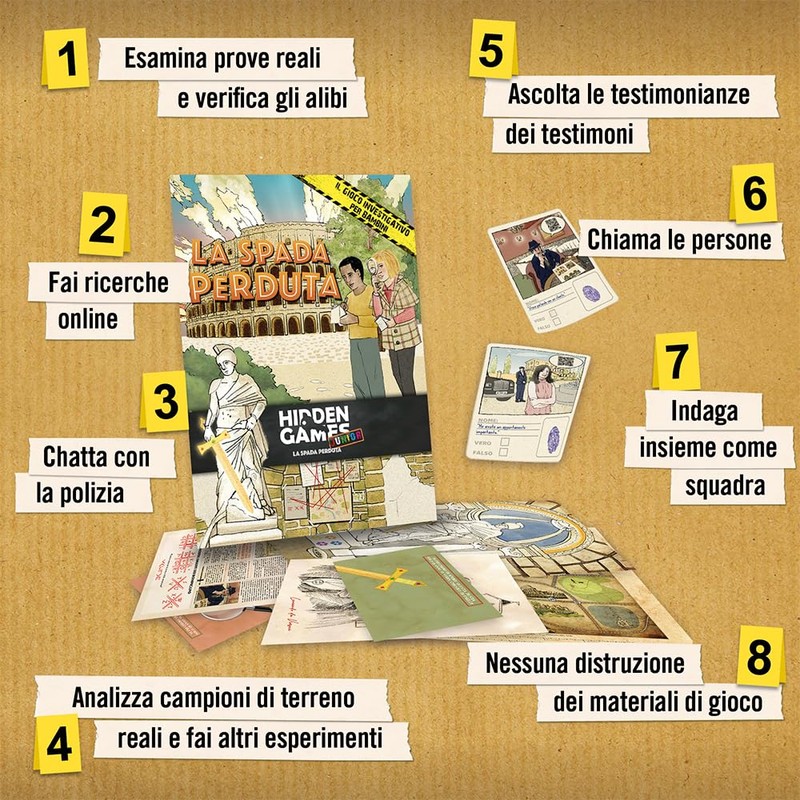 Hidden Games Crime Scene - The Lost Sword - Italian - Realistic Game of the Fact Scene, Exciting Detective Game, Escape Room Game