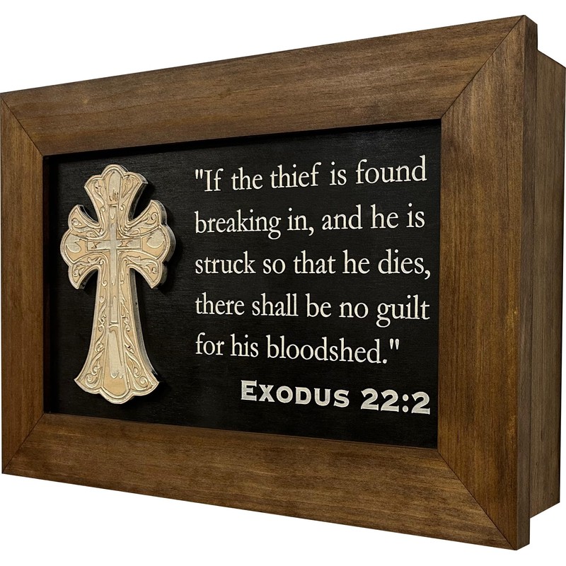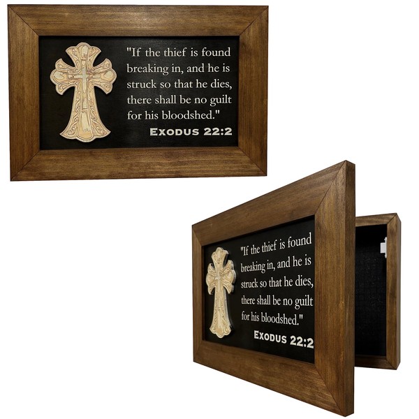- Hidden Gun Storage Cabinet with a 3D Cross and the Exodus 22:2 Bible Verse - Secure Wall-Mounted Concelaed Gun Safe.