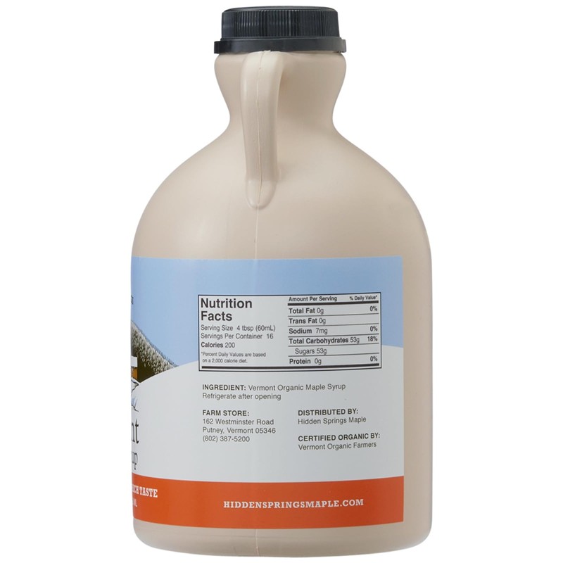 HIDDEN SPRINGS MAPLE Hidden Springs Maple Organic Vermont Maple Syrup, Grade A Amber Rich, 32 Ounce, 1 Quart, Family Farms, BPA-free Jug