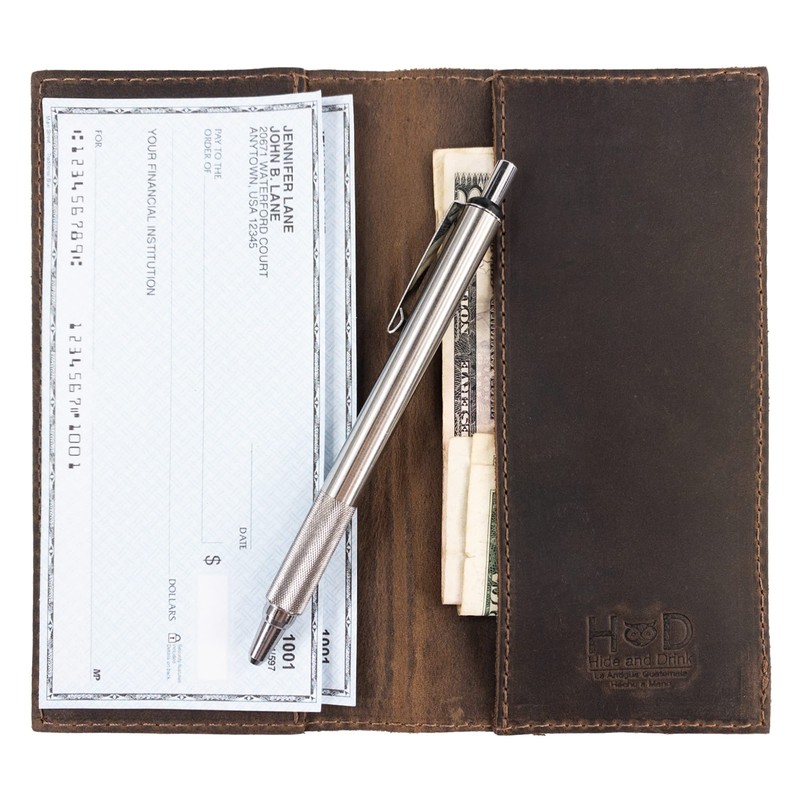Hide & Drink, Checkbook Cover, Minimalist Organizer, Check Presenter, Bill Holder for Waiter and Waitress, Restaurant Accessories, Full Grain Leather, Handmade, Bourbon Brown