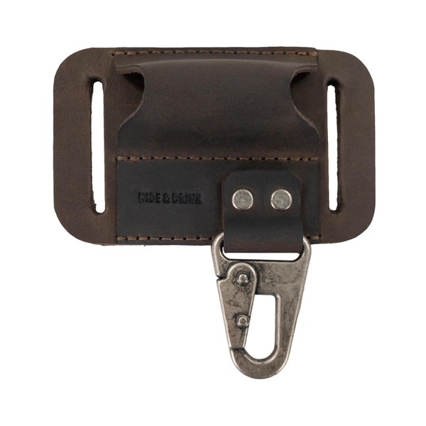 Hide & Drink, Mini Flashlight Holster with Belt Mount, Extra Clasp for Accessories, Handmade from Full Grain Leather - Bourbon Brown