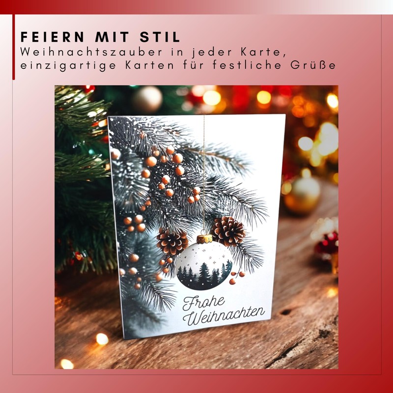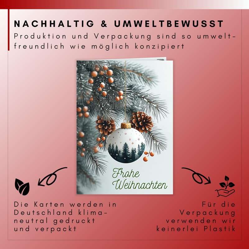 HIDEBLOOM Christmas Cards Folding Cards Set Christmas Baubles with Envelope I Pack of 10 I DIN A6 (10.5 cm x 14.8 cm) I Christmas Card Set with Envelopes I Greeting Cards Christmas Folding Card