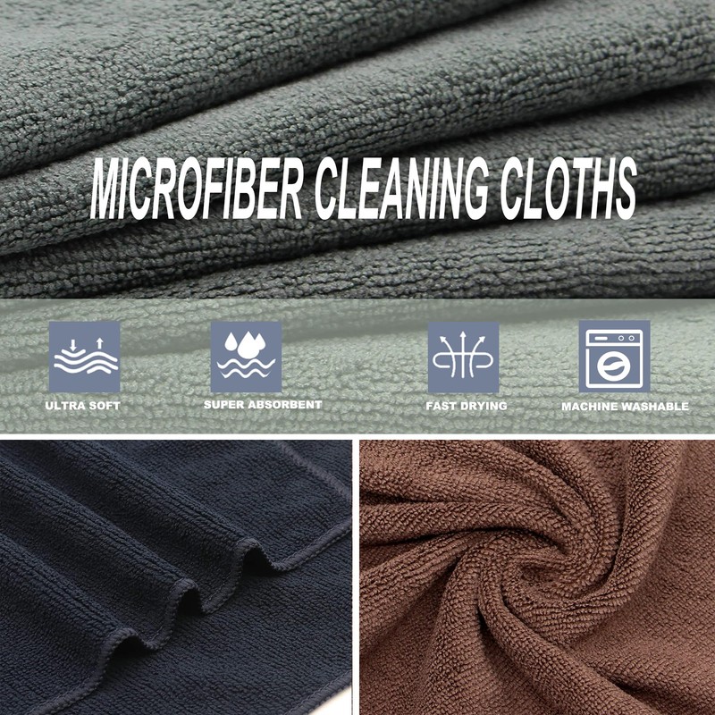 HIDMD Microfibre Cleaning Cloth, Microfiber Reusable Cleaning Cloths Washable Cloth, Pack of 15, Grey Black Brown, 30cm x 30cm