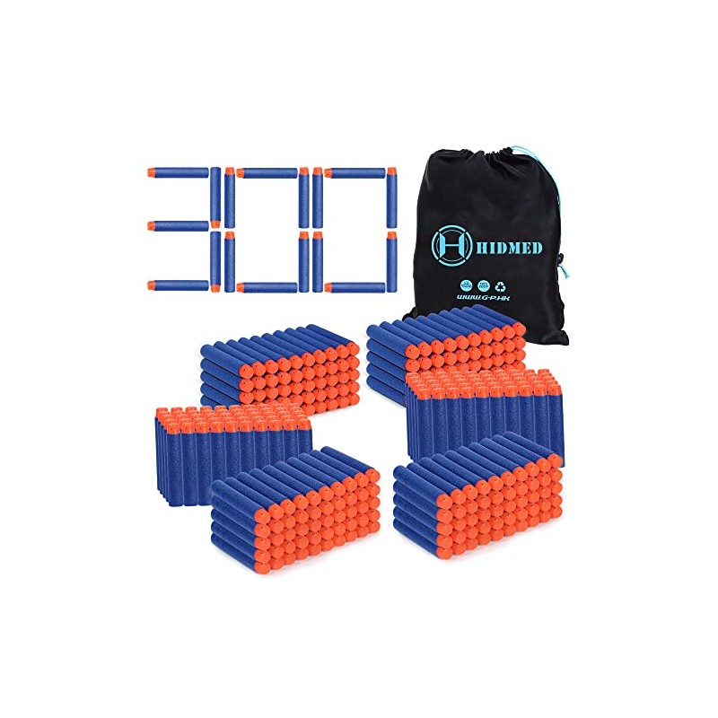 HIDMED Blaster Darts, 300 Pack Refill Bullets for Nerf N-Strike Elite, Toys Foam Blasters for Boys Party Favors, with Portable Storage Bag