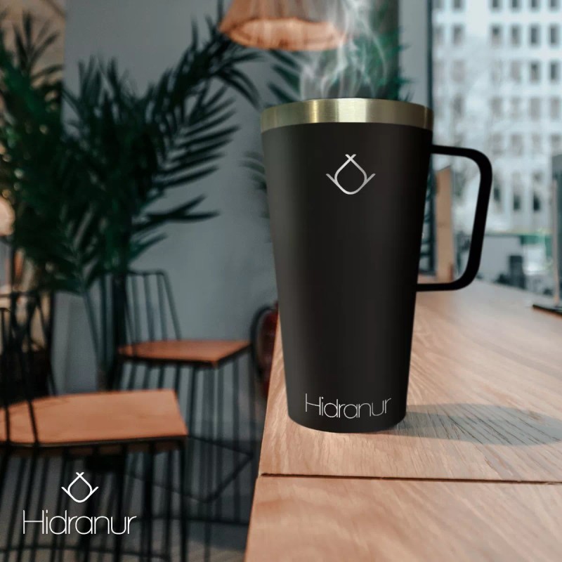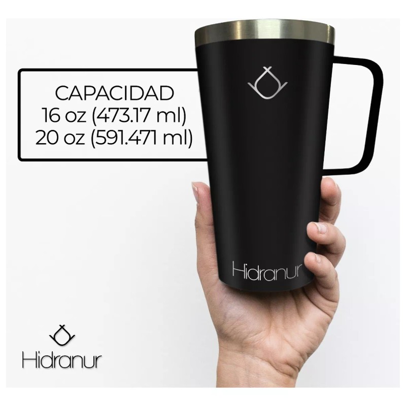 Hidranur Termo Taza Vaso Con Tapa Para Bebida Fría Y Caliente 16oz Color Negro