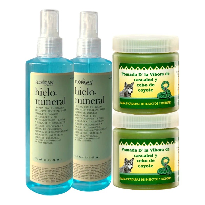 Hielo Mineral Florigan 250ml 2pz +2 Pomada Vibora Para Dolor