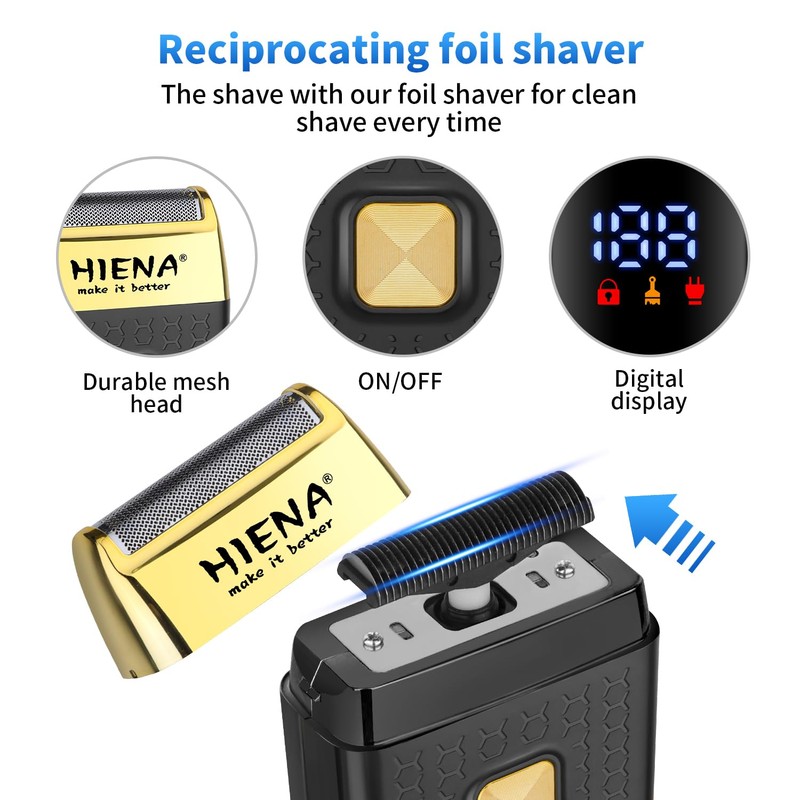 - Smart LED Display: The hair machine men moustache trimmer and foil shaver in this hair clipper kit from HIENA PRO both possesses smart LED screens which enable our users to see the percentage of battery life from 0 to 100, allowing our users to control the using time more accurately