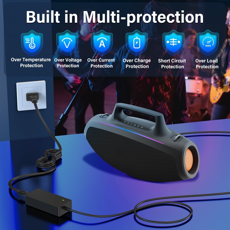 - Security Protections: The power supply cord for Skullcandy Boombox Speaker has been certificated by UL after 10000 times of charging and aging tests, which is built in protection design of over current, temperature and load protection