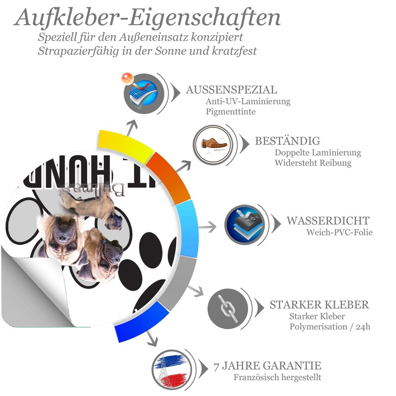 Special extra: with your vintage warning sign you will receive a stylistically matching 20 x 5 cm car sticker in retro look with your Bullmastiff breed and the text "Dog on Board" - perfect for your vehicle or other smooth surfaces.