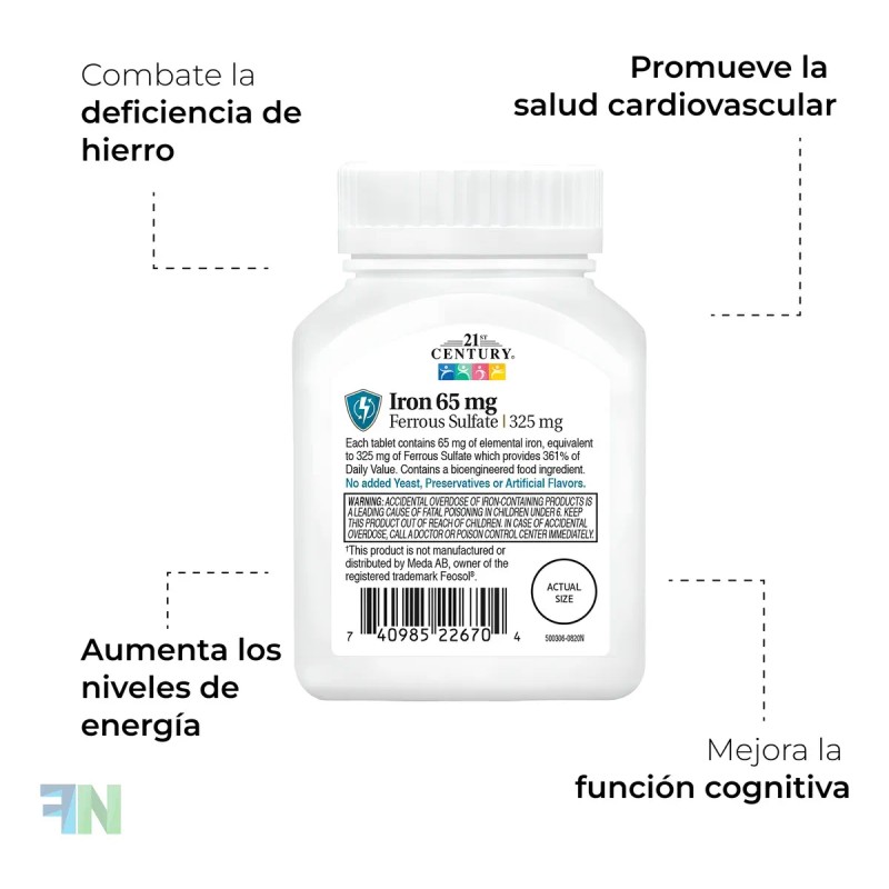 Las 21st Century Hierro 65 Mg de 120 Tabletas son una inversión estratégica en tu vitalidad, tu claridad mental y tu bienestar general. ¡Es hora de sentirte fuerte, energizado y listo para conquistar el mundo! 🌟