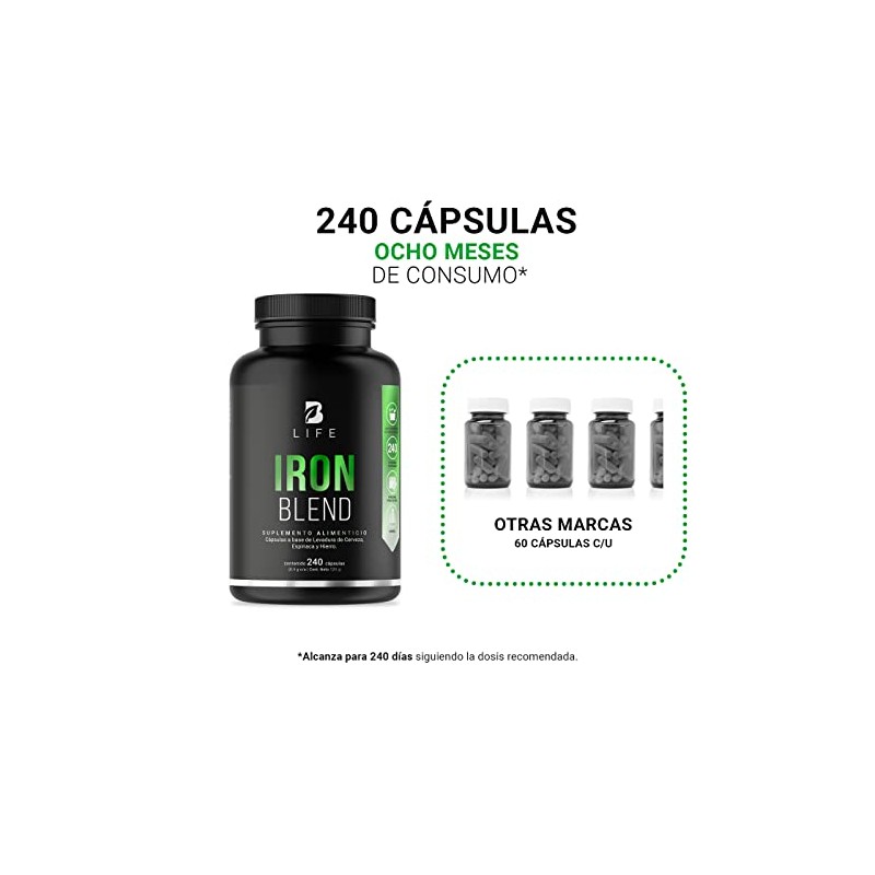 Hierro de 240 Cpsulas con Levadura de Cerveza y Espinaca. Ingredientes naturales. Iron Blend B Life.