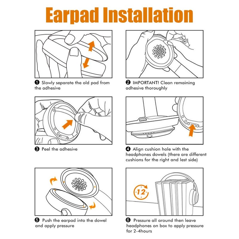 TIPS : Read our instruction carefully before installation, then you will never worry about ear pads falling off.
