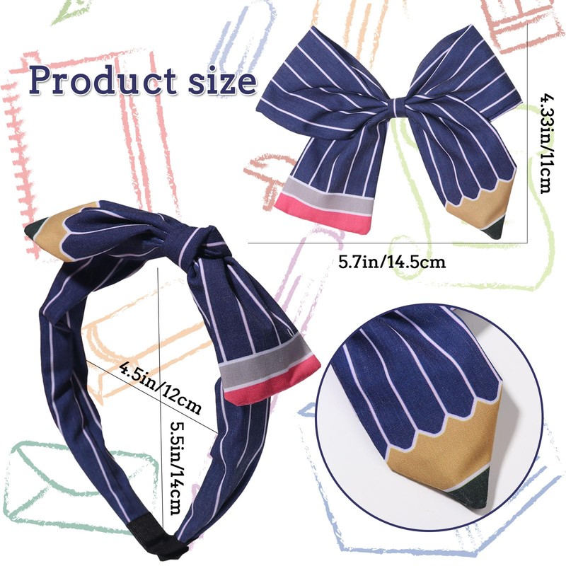 - 【Good Topic Maker】-- With this fun pencil headband and school bow clip set,your girl can share her cute back to school hair accessories with classmates, quickly and confidently integrating into the collective environment.