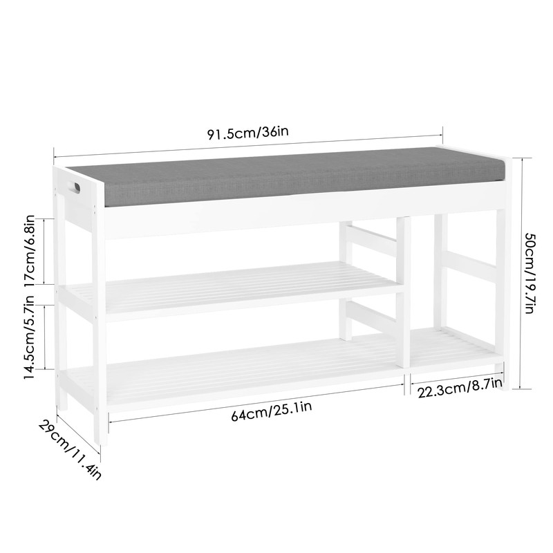 • SPECIFICATIONS: The size of the storage bench is 36” x 11.4” x 19.7”. With a depth of 11.4”, this shoe cabinet is perfect for installation in a hallway or corner.