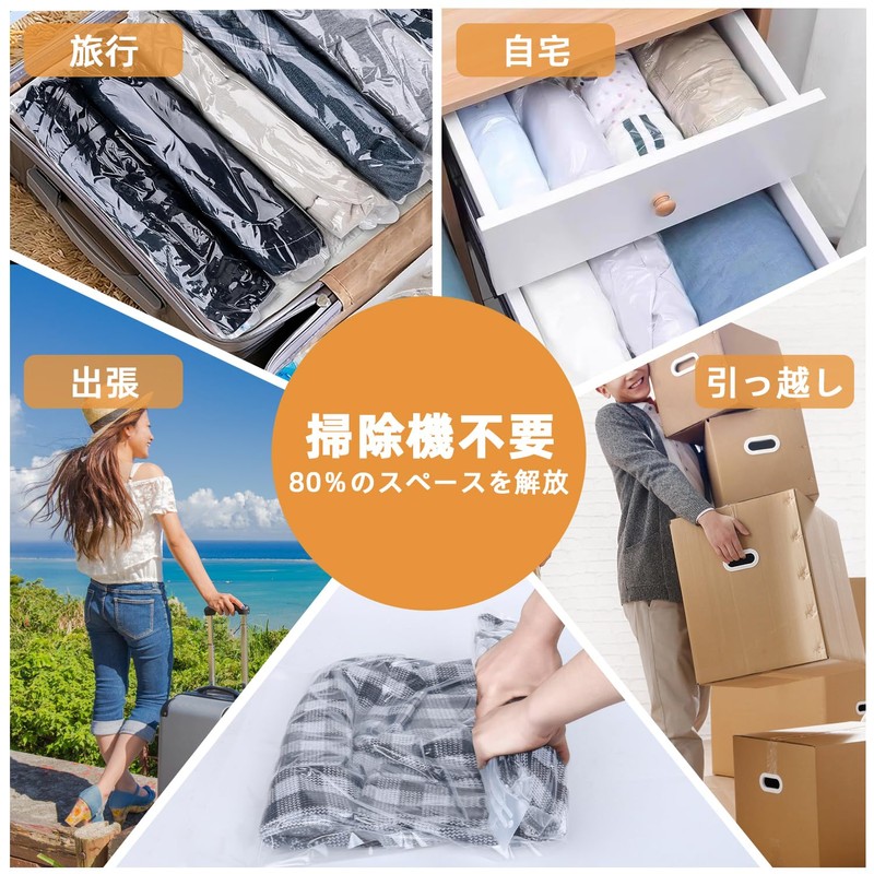 Compression pouch reduces clothes volume by up to 80% and increases storage in suitcases! It can store 2 to 3 nights of clothes in a suitcase, so it is useful for various occasions such as traveling, business trips, camping, moving, etc.