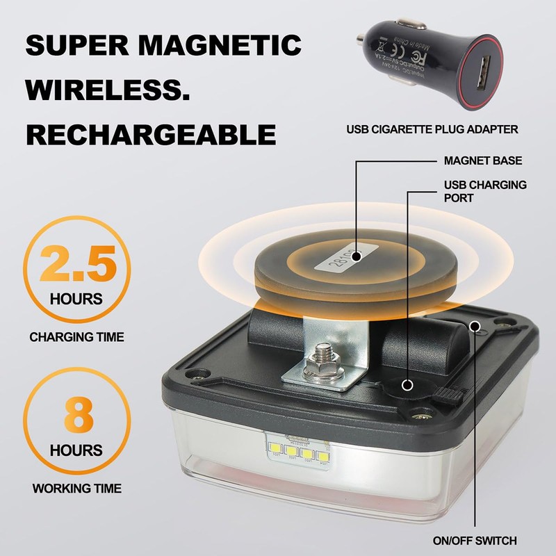 - MONEY SAV AND EASY INSTALLATION: The wireless trailer lights with magnetic suction base greatly reduces wire installation process, easy to install detachable, avoid the abrasion and breakage of the wire. The lights can be firmly attached to any solid metal surface with super-strong magnetic force and anti-falling wire rop keep stable, and will not fall off even driving speed up to 60Mph. This is a great investment on no fear lost.