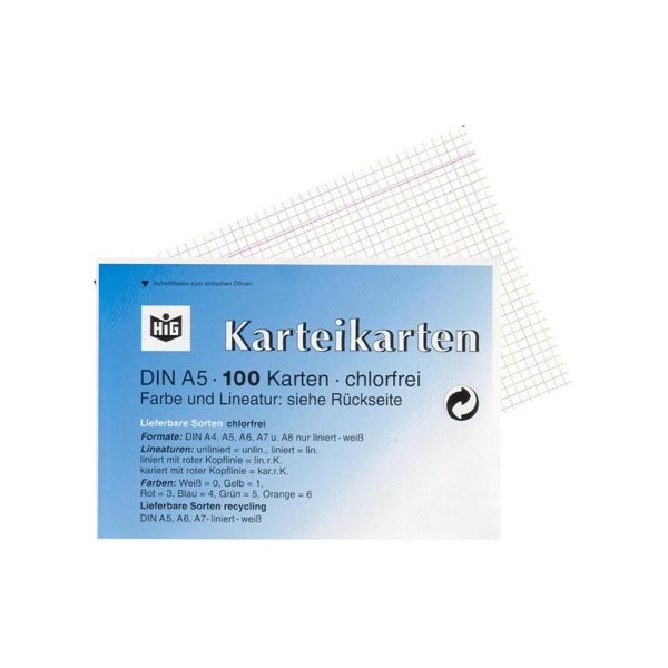 HIG K5 KAR 0 Index Cards A5 Pack of 100 White Squared
