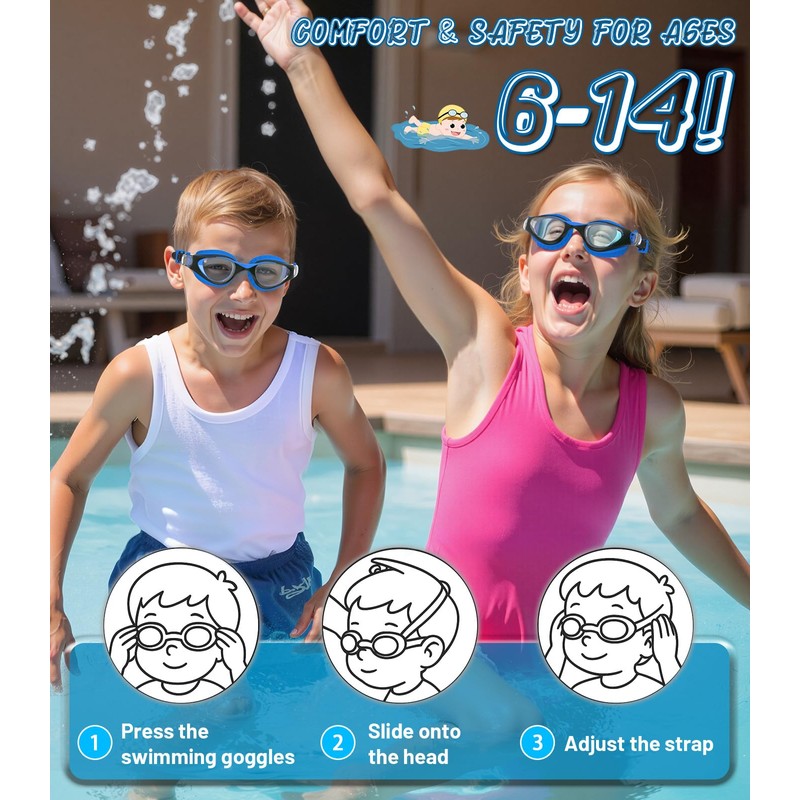 - Anti-Fog & UV Protection: These HIGAHY goggles for kids 6-14 feature an innovative coating on the lens to protect against harmful UV rays and prevent fog buildup. This ensures clear vision for your child, whether they're swimming in the pool or at the beach. Perfect for keeping their eyes protected while having fun in the water