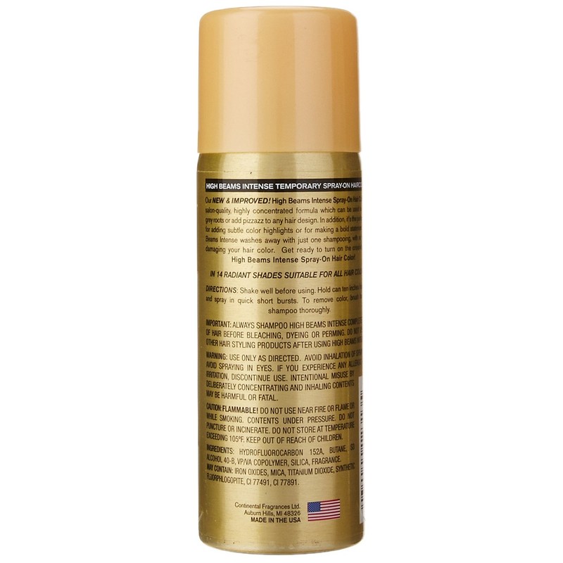 - High beams intense washes away with just one shampooing, with no risk of damaging your hair color; Get ready to turn on the creativity with high beams intense temporary spray-on hair color
