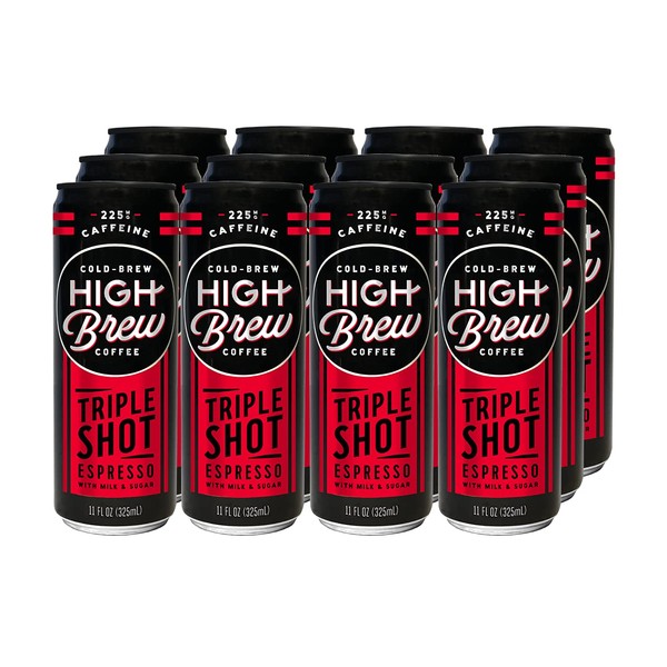 - High Brew Cold-Brew Coffee, Triple Shot Espresso, 3x Caffeine, Gluten Free, 11 Fluid Ounce (Pack of 12)