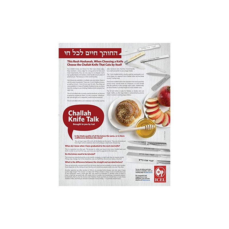 Combined with a beautiful sleek stainless steel handle that stays nice for life no polish needed and no rust. The handle has on the handle engraved Lkuvat Shabbos kodesh.