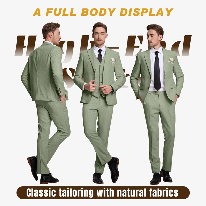 - Style: Linen Suit for Men, Casual Business Suit ,Slim Fit 3 Pieces Suits for Men,Two Button Jacket For Men,Big and Tall Suits Pant for Men ,Homecoming wedding /bridegroom /prom Suit for Men