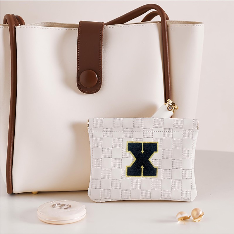 HIGH FIT Leather Pocket Cosmetic Bag for Purse,Initial Makeup Bag Lipstick Cosmetic Accessories Organizer (G, White)