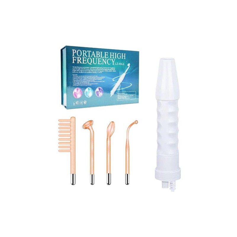 - 【Meet different beauty needs】High frequency machine equipped with four replaceable glass tubes, designed for different parts: the wide mushroom head improves large facial wrinkles, the fine tongue-shaped tube is effective for acne and blemishes, the curved tube gently cares for the eyes and lips, and the comb-shaped tube promotes hair growth. Multi-faceted coverage, easy to achieve all-round beauty care.