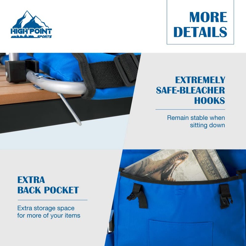 HIGH POINT SPORTS Foldable Stadium Seats for Bleachers with Back Support, Ble...