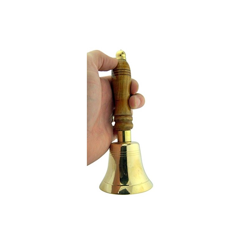 High Polished Brass Service Bell with Wood Handle, 2 1/2 Inch (Dia)
