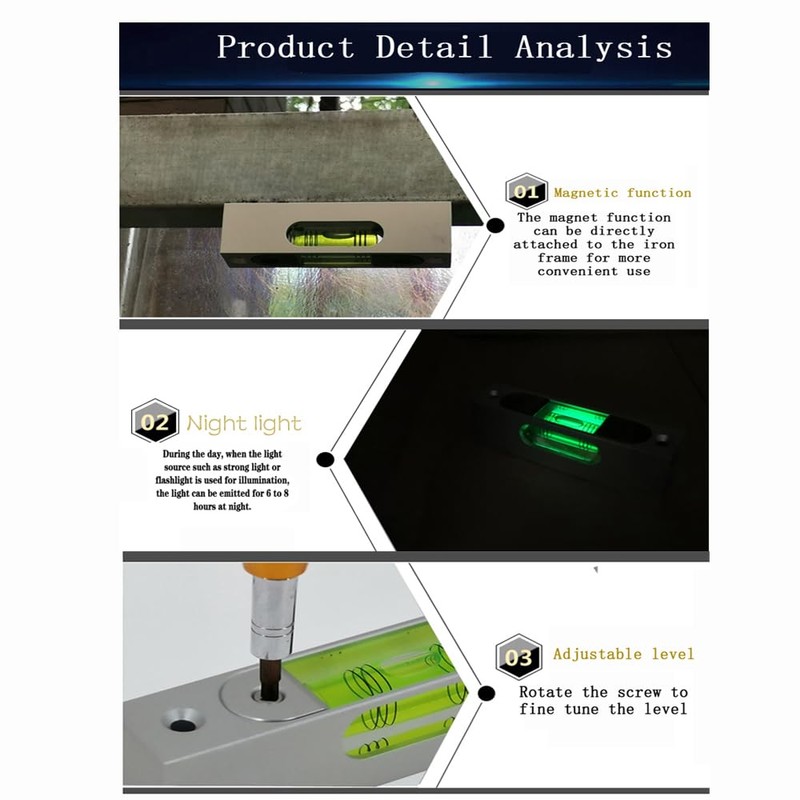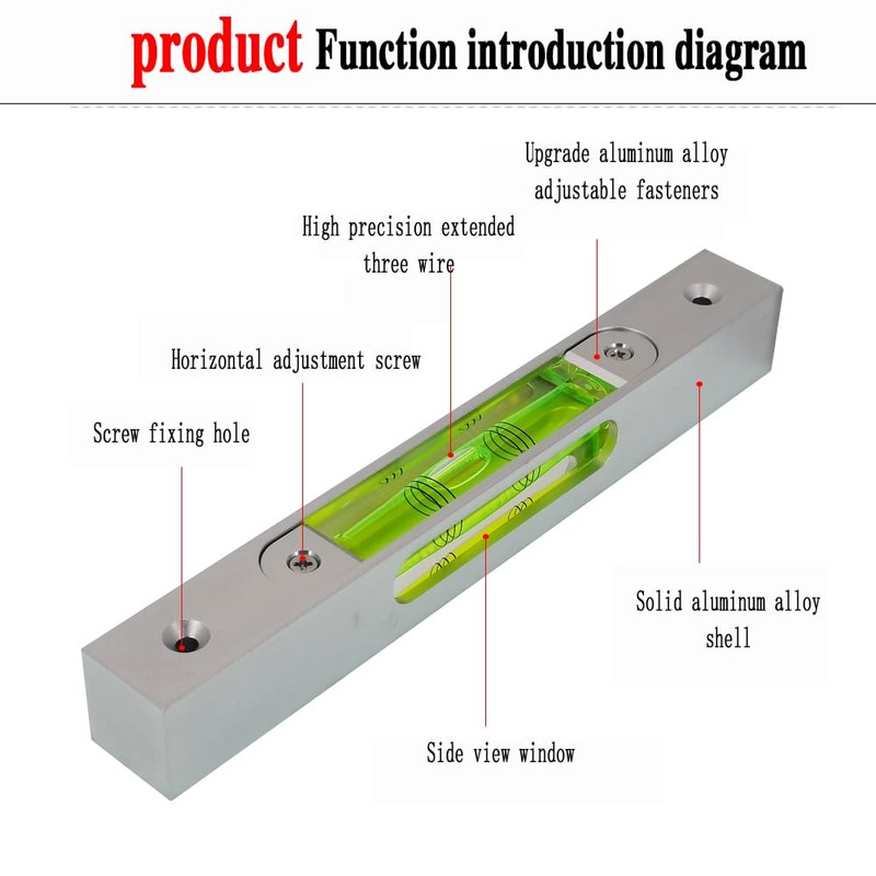 High Precision Aluminum Alloy Metal Adjustable Level Bubble Small Square bar Luminous Magnetic Length 180 Hole Pitch 150MM (180 * 22 * 23mm)
