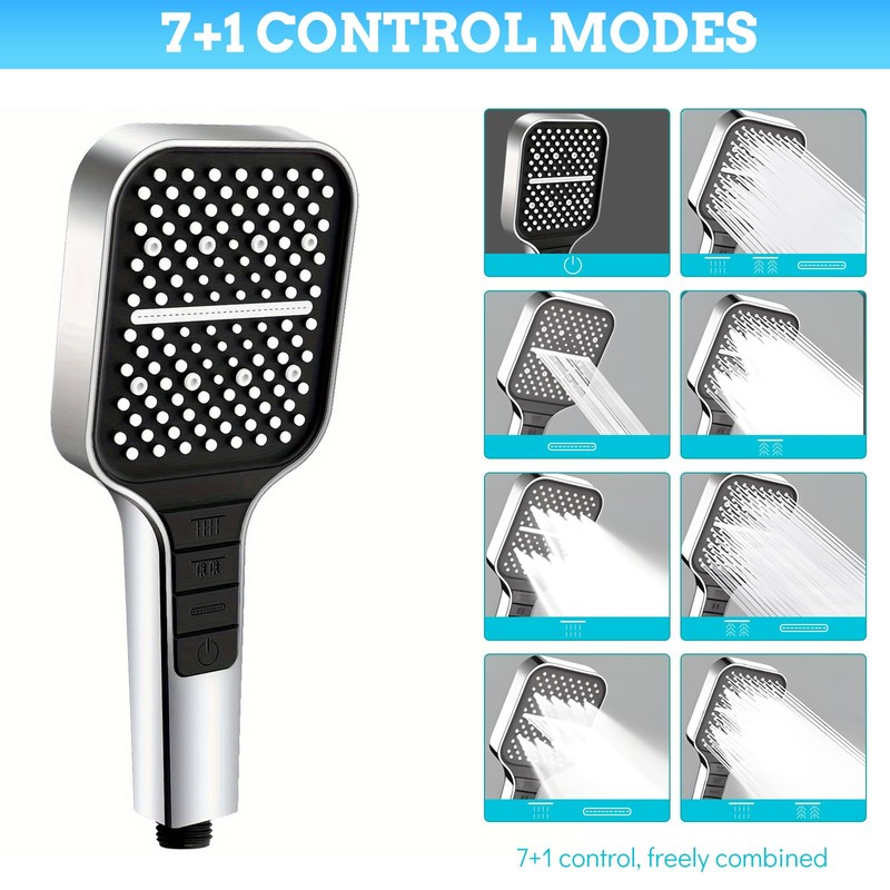 High-Pressure Shower Head - 7+1 Modes Large Shower Head Universal Replacement Water Saving Showerhead Handheld Powerful Shower Heads for Low Water Pressure, Square