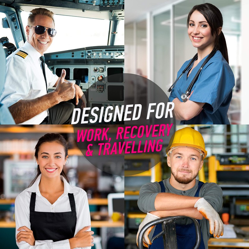 - More than just Aeroplane stockings: Support of the calf muscles and improved venous return can contribute to reduce of swelling, pain and fatigue in the lower leg. Originally worn by travellers on long-haul flights, they are now becoming more popular for other activities with long standing or sitting. Athletes wear it for faster recovery. Others just because of the high comfort.
