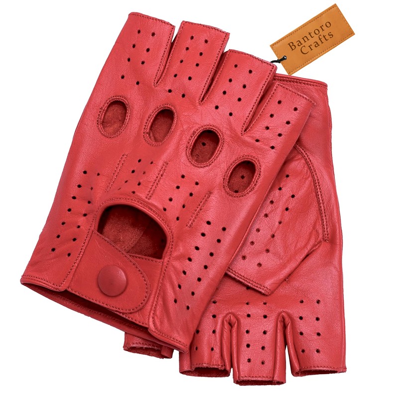 - Red Premium Sheepskin Leather - These fingerless motorist gloves made of premium soft sheepskin leather provide lasting comfort, durability and flexibility.