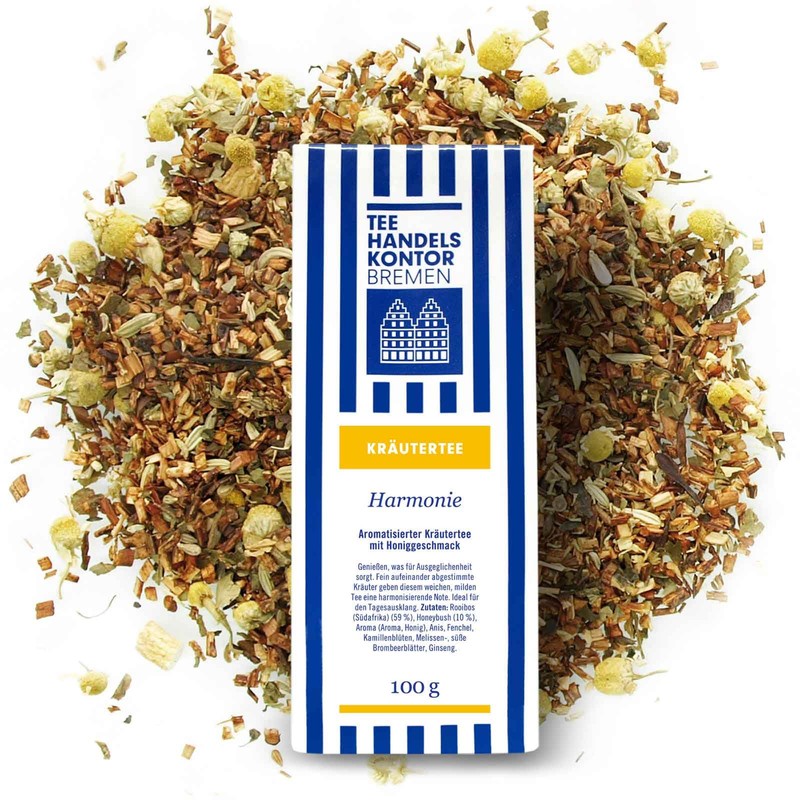 - 🌿 Lemon balm and chamomile become a very special herbal tea taste with intense honey note. Harmony from TEE HANDELSKONTOR BREMEN, for the harmonious moments in life.