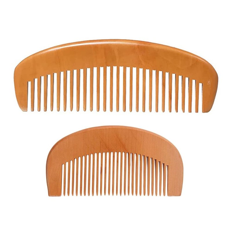 High Quality Wooden Comb, Natural Peach Wood Comb, Scalp Massage, Coarse Eyes, Anti-Static, Coarse Teeth, Half Moon Shape, Unisex, Gift (B Type)