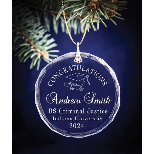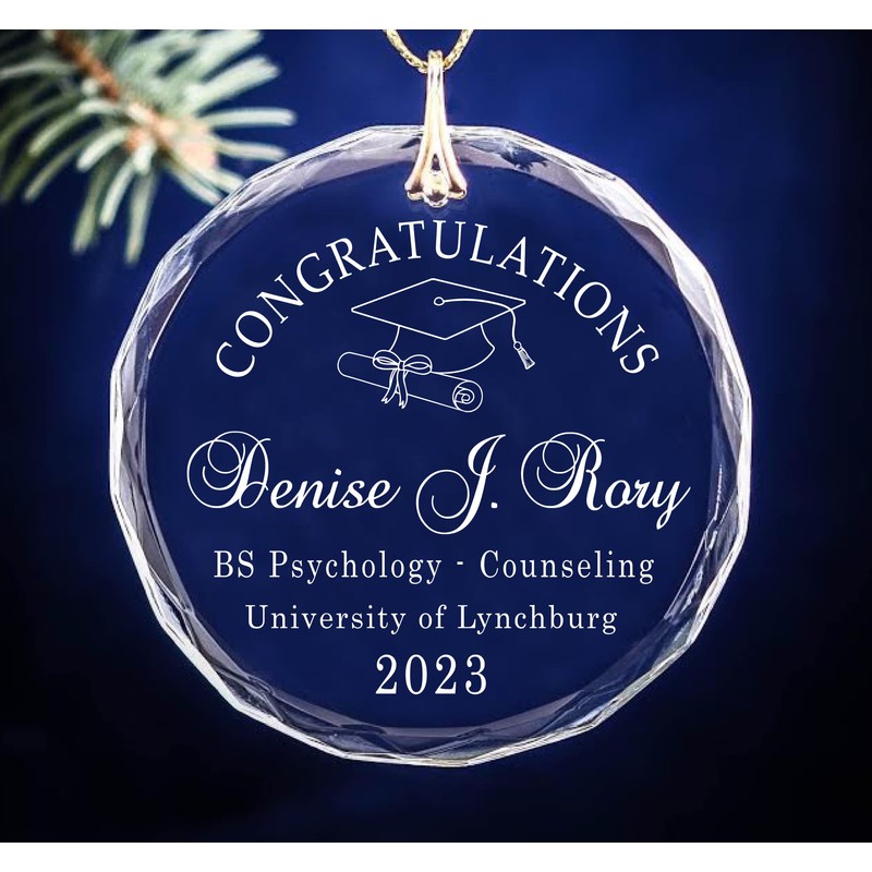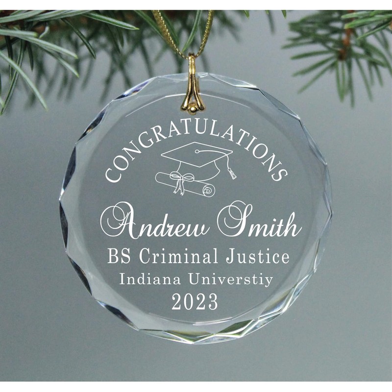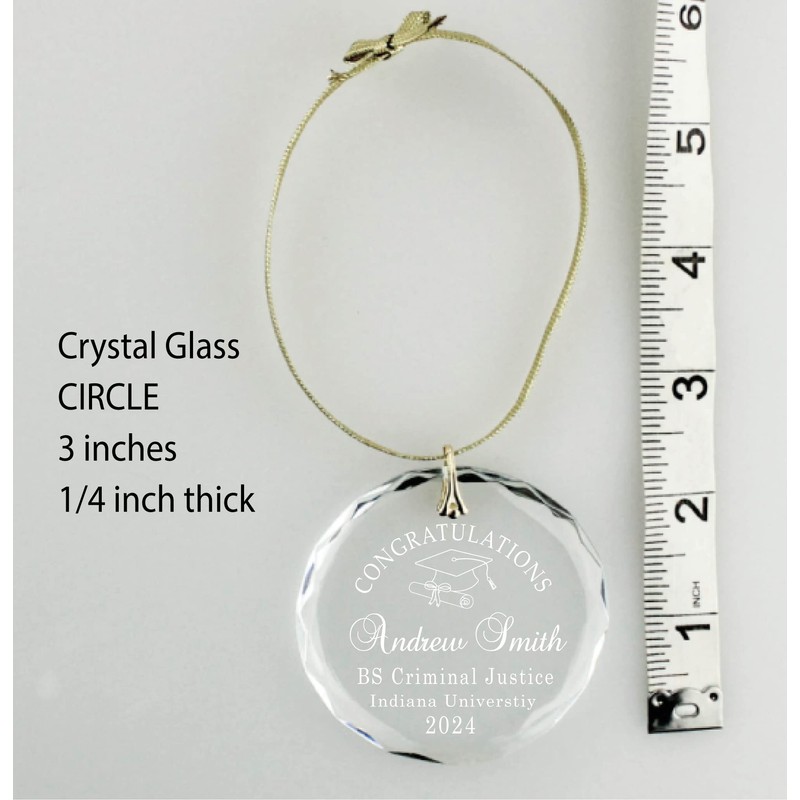 High School or College Graduate Crystal Glass Optic Crystal Christmas Circle Ornament Personalize with Beautiful Script Name
