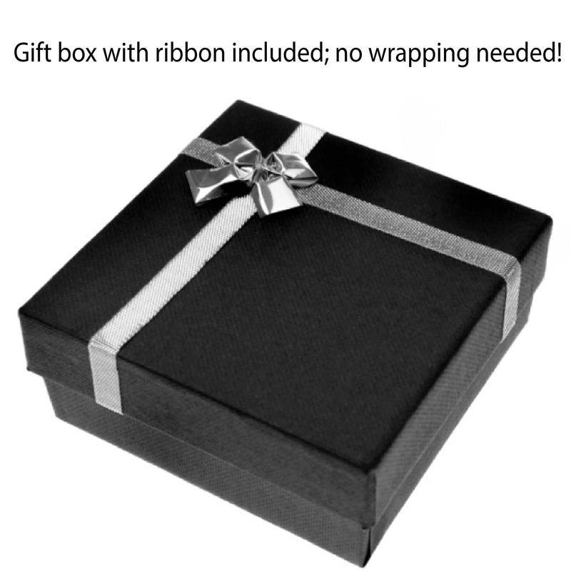 - Metal clasp and ribbon for hanging included. Gift box with ribbon included. (No wrapping needed!)