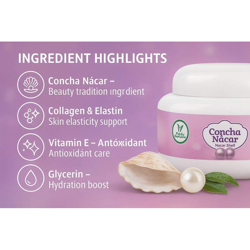 - 🌊 Mother of Pearl Heritage | Herencia de Concha Nácar Enriched with natural nacar shell extract, collagen, elastin & vitamin E. Enriquecido con extracto natural de concha nácar, colágeno, elastina y vitamina E.