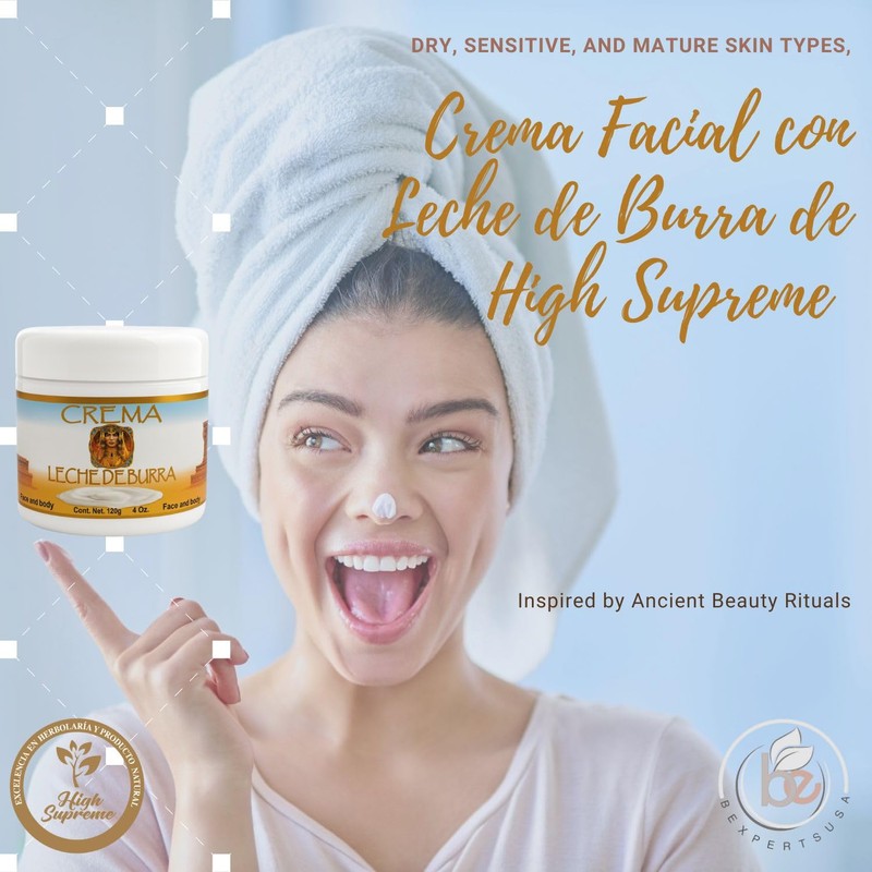 - 🧴 Enriched with Donkey Milk, Collagen & Hyaluronic Acid A luxurious blend that deeply hydrates and promotes skin elasticity. 🧴 Enriquecida con Leche de Burra, Colágeno y Ácido Hialurónico Hidratación profunda y elasticidad para una piel más firme y radiante.
