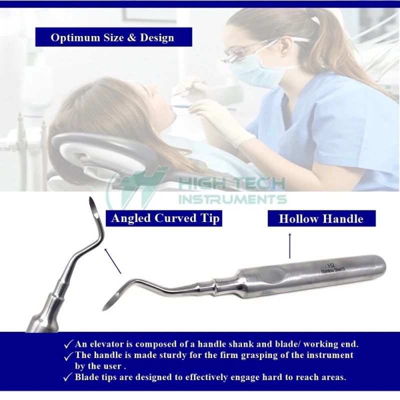 HIGH TECH INSTRUMENTS Dental Surgery Elevator Root Tip Extraction & Loosening Teeth Slim Handle H2