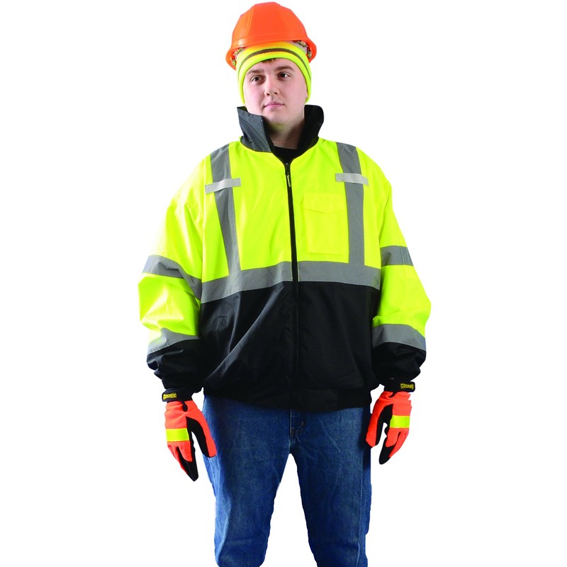 ANSI 107 100% Polyester 300 Denier Oxford with PU coating - waterproof with sealed seams. Front zipper closure with inside storm flap.