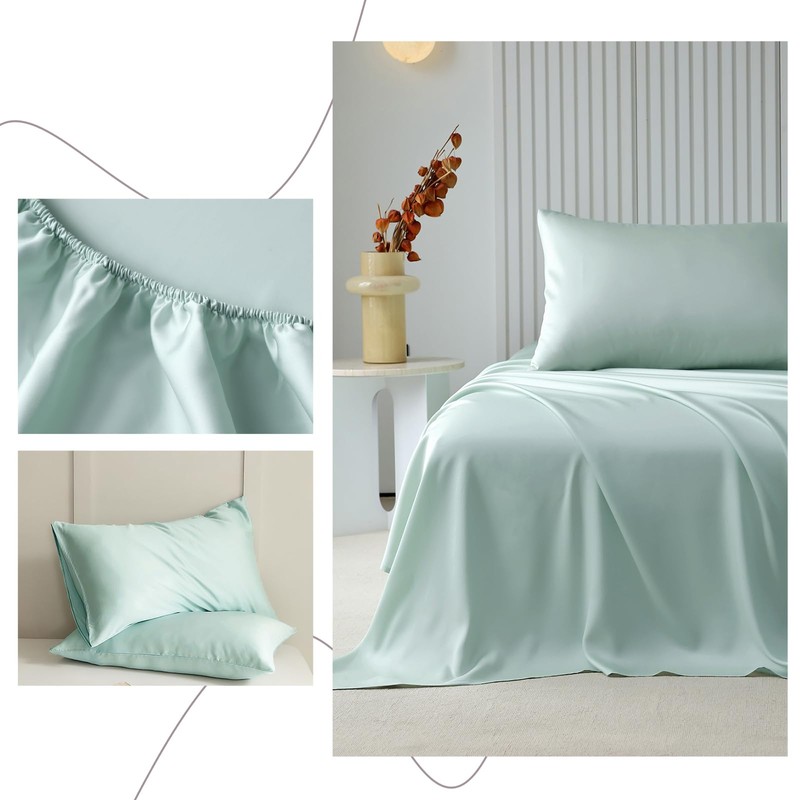• SOFT BED SHEET SET - Solid Green Cooling Twin XL Sheet Set is wrinkle and fade resistant.HIGHBUY bed sheet sets are available in a variety of beautiful designs and colors,prefect for your home decor aesthetic.Ultra soft boho green sheets is best for Bedroom,Guest Room,Kids Room,RV,vacation home,College Dorm.Ideal choice as a sweet gift for Women,Men,Teens,Boys,Girls,Toddlers,Nursery,Friend,Son,Daughter,Family