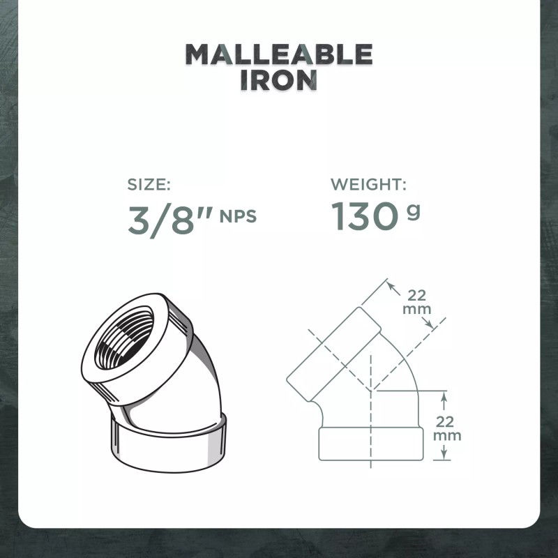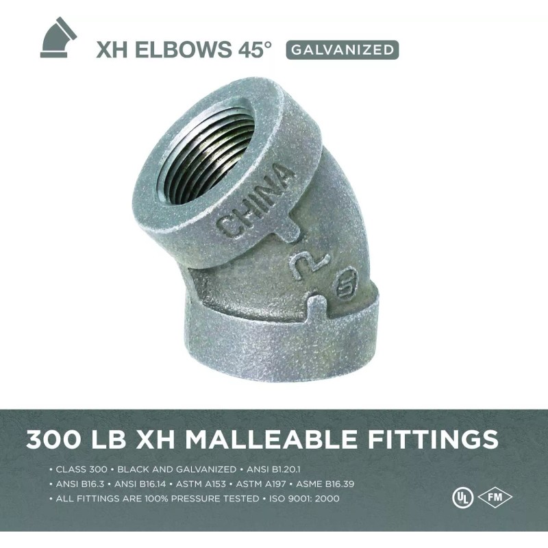 Highcraft 300LB XH Malleable Iron 3/8" FIP Elbow 45 Degree, Galvanized Pipe Fitting