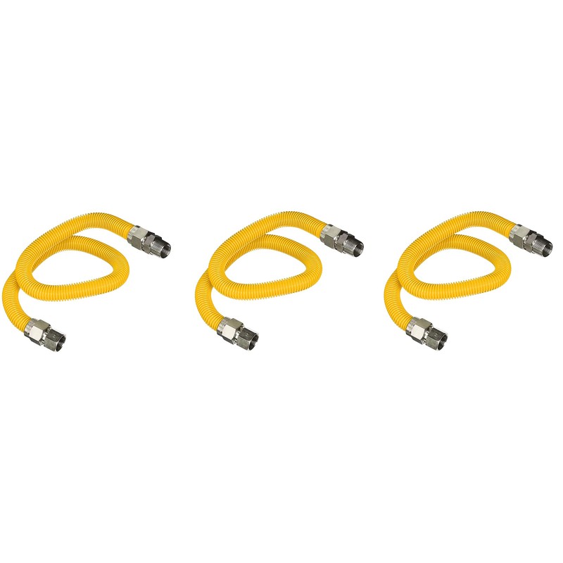 Highcraft GUHDZD3436Q 36" Flexible Yellow Epoxy Coated Gas Line Connector with 1" O.D. and 3/4'' FIP x 3/4'' MIP Fittings, Stainless Steel (Pack of 3)